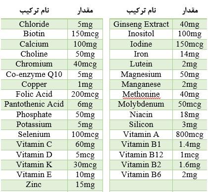 ترکیبات: (برای مشاهده ی بهتر اطلاعات جدول روی آن کلیک کنید)
