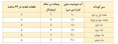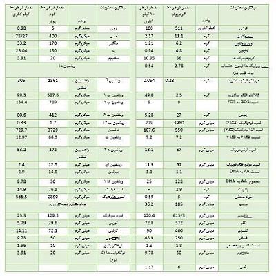 جدول تغذیه: (برای مشاهده بهتر اطلاعات جدول بر روی آن کلیک کنید).