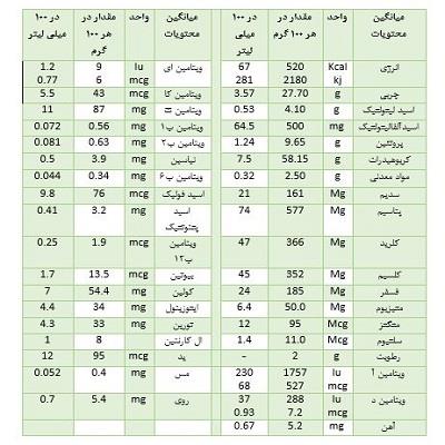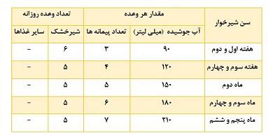 جدول تغذیه: (برای مشاهده بهتر اطلاعات جدول بر روی آن کلیک کنید).