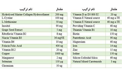 ترکیبات: (برای مشاهده ی بهتر اطلاعات جدول روی آن کلیک کنید)