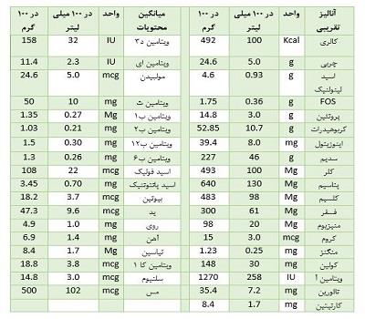 ترکیبات: (برای مشاهده بهتر اطلاعات جدول بر روی آن کلیک کنید).