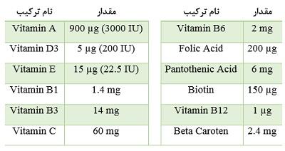 هر قرص جوشان حاوی همه ویتامین های زیر می باشد.