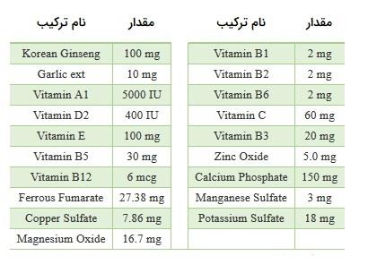 ترکیبات: (برای مشاهده ی بهتر اطلاعات جدول روی آن کلیک کنید.)