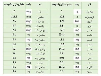 ترکیبات: (برای مشاهده بهتر اطلاعات جدول بر روی آن کلیک کنید).