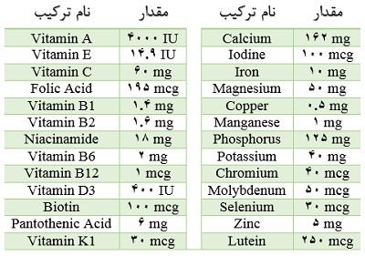 ترکیبات: (برای مشاهده بهتر اطلاعات جدول بر روی آن کلیک کنید).