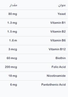 کپسول ب کمپلکس حاوی ویتامینهای گروه ب (ب1، ب2، ب3، ب5، ب6، ب12)، بیوتین، اسید فولیک و مخمر می باشد. ویتامین های گروه B یکی از مهم ترین گروه ویتامین های موثر در سلامت پوست، مو و ناخن به شمار می روند همچنین ویتامین های گروه B در سلامت سیستم عصبی و روانی، جلوگیری از اختلالات حواس و افسردگی تاثیر بسزایی دارند.