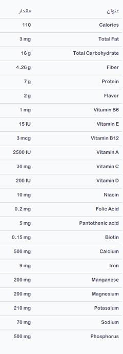 یک پیمانه حاوی 31 گرم از پودر در شیر یا آب حل نموده سپس میل نمایید.