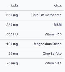 ویتامین D3 موجب جذب بیشتر کلسیم، فسفر و حفظ سلامت استخوان ها و دندان ها می شود. این ویتامین در حفظ سطح کلسیم طبیعی خون کمک می کند و عملکرد سیستم ایمنی را افزایش می دهد. منیزیم به پیشگیری از پوکی استخوان و بهبود دردهای عضلانی کمک می کند. این عنصر به کاهش خستگی نیز کمک شایانی می نماید. روی (Zinc) به رشد و ترمیم ماهیچه ها، استحکام بافت های استخوان و تقویت سیستم ایمنی کمک می کند. همچنین زینک یک عنصر ضروری در بدن برای سلامتی مو، ناخن و پوست می باشد. ویتامین K1 به تراکم استخوان و حفظ سلامت بافت های استخوانی کمک می کند. این ویتامین از رسوب کلسیم در محل های زیان آور همچون مفاصل و رگ ها جلوگیری می کند.