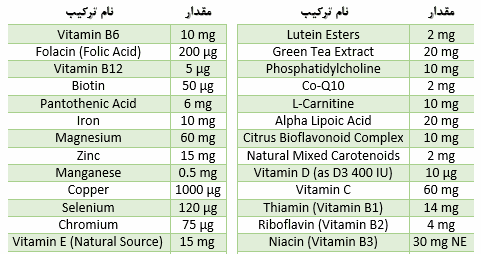 ترکیبات قرص ول وومن ویتابیوتیکس: (برای مشاهده بهتر اطلاعات جدول بر روی آن کلیک کنید).