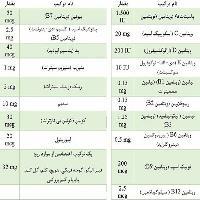 ترکیبات: (جهت مشاهده جدول بهتر بر روی عکس کلیک نمایید)