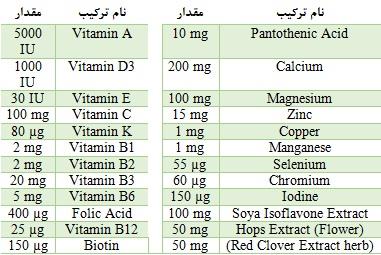 ترکیبات: (برای مشاهده ی بهتر اطلاعات جدول روی آن کلیک کنید)
