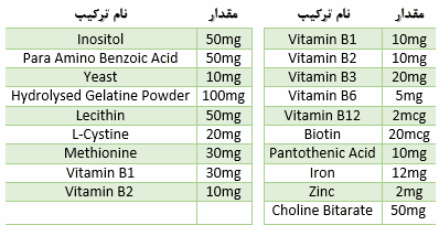 ترکیبات کپسول هیر ویت هلث اید: (برای مشاهده بهتر اطلاات جدول بر روی آن کلیک کنید).