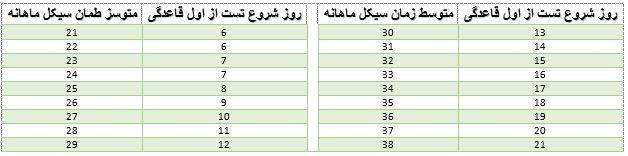 برای تعیین زمان شروع از جدول زیر استفاده کنید (برای مشاهده بهتر اطلاعات جدول بر روی آن کلیک کنید.)